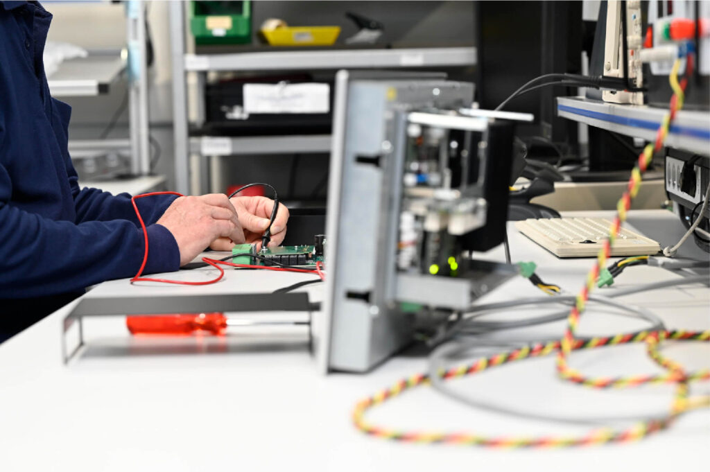 Speziell geschulte Mitarbeiter führen Reparaturen an Ihren Komponenten durch – herstellerunabhängig, also auch für Produkte, die nicht aus unserem Haus stammen. Unterstützung erfahren unsere Techniker durch unsere Reparaturdatenbank, welche nicht nur Gerätehistorien spezifisch zu Produktgruppen enthält, sondern auch mit auf Geräte zugeschnittenen, definierten Reparaturprozessen und Reparaturbeschreibungen aufwartet.